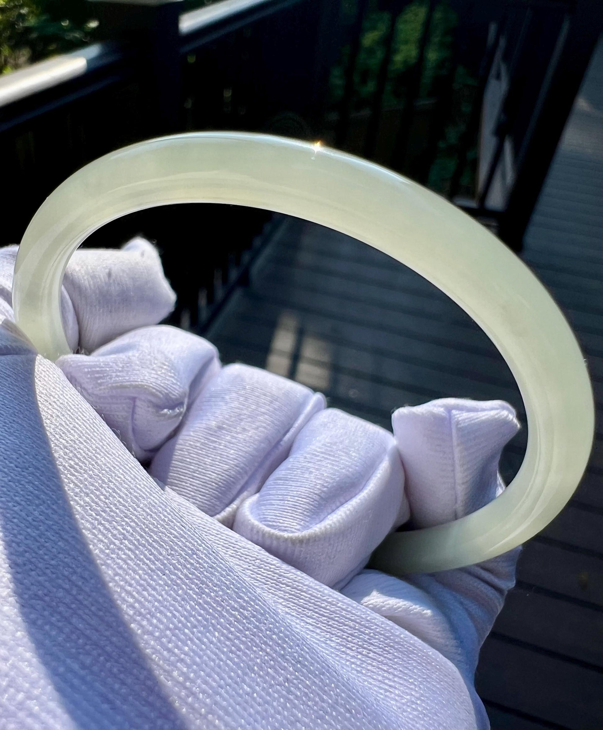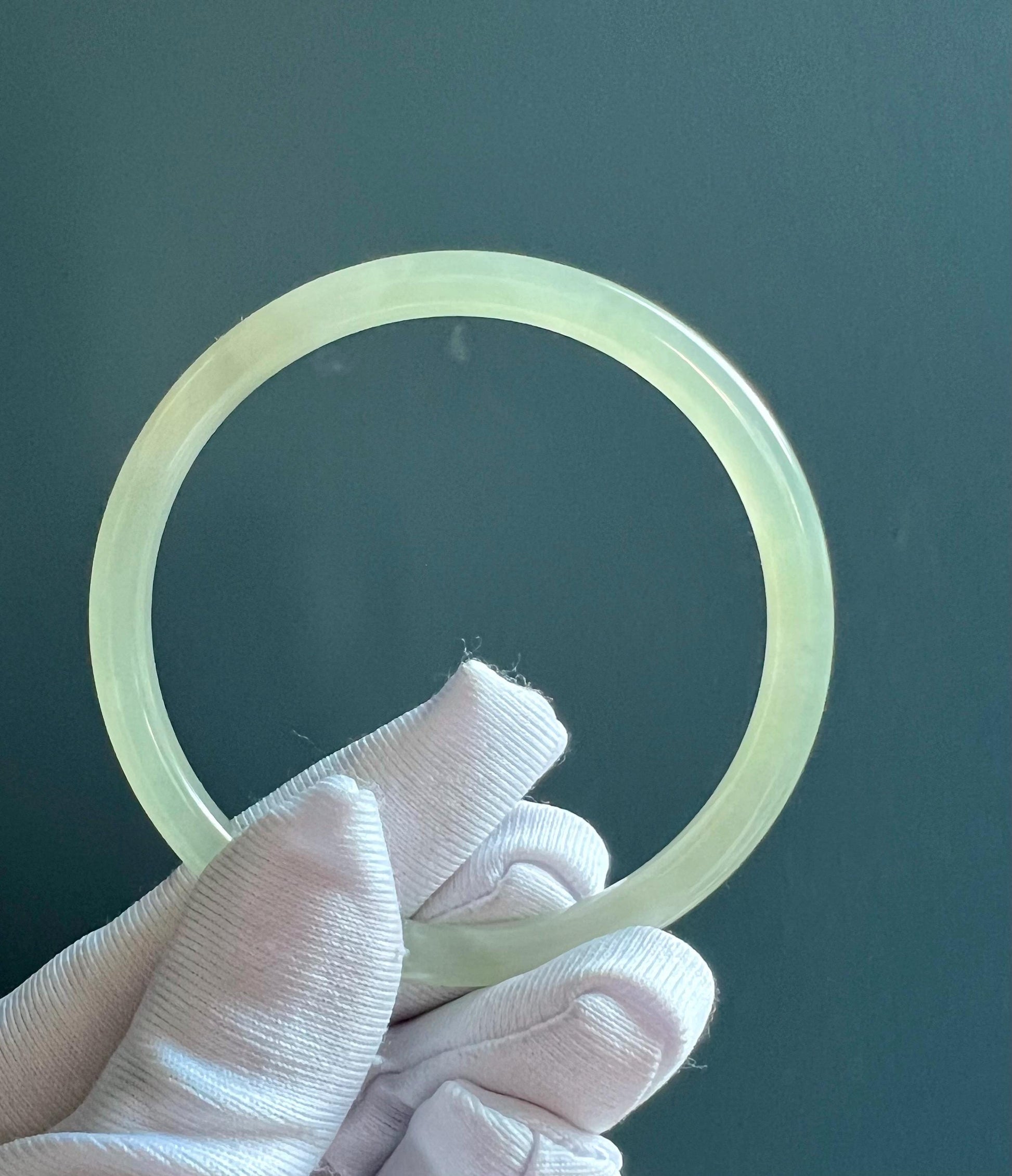 53.5mm Certified natural icy light green nephrite Bangle/Qingshui dangling bangle 天然软玉 冰晴水 细圆条手镯 叮当镯 冰润起莹光 #5403