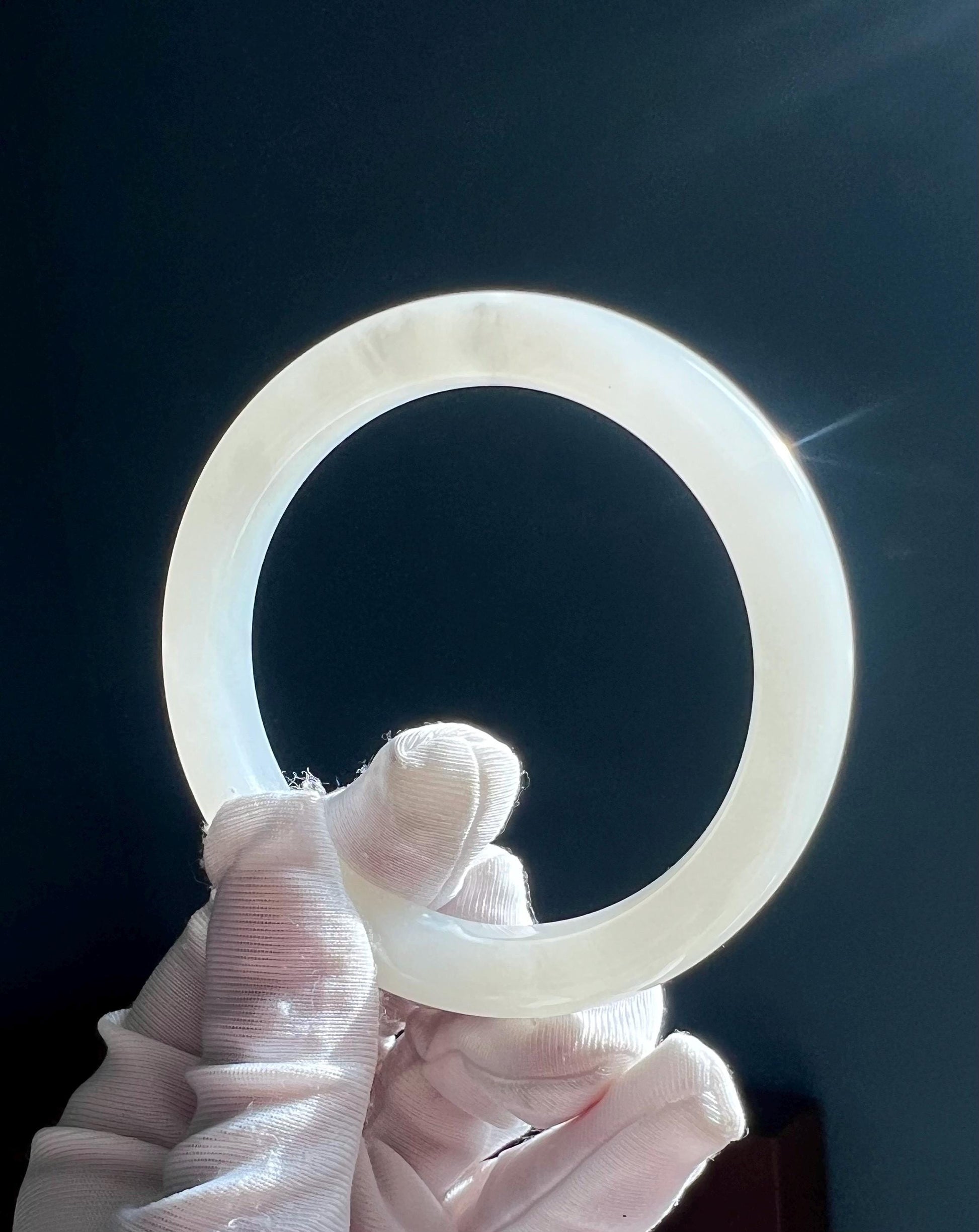 58.6mm Certified Natural hetian jade /Qinghai old mine White Nephrite bangle bracelet/天然精品和田玉 青海老矿白玉 正圈手镯 平安镯 冰白起莹光#4960
