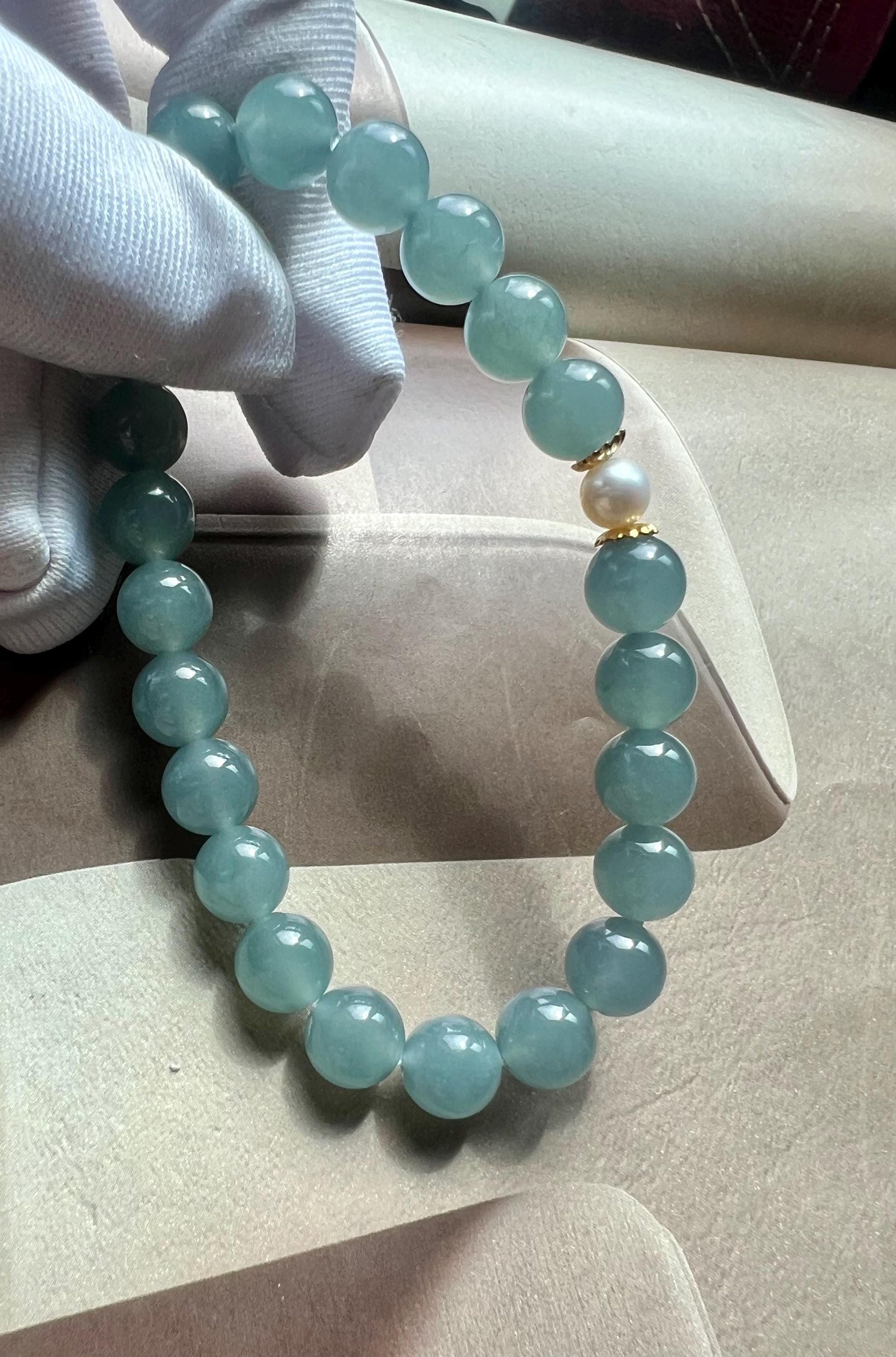 7.8mm Certified natural untreated Grade A Jade bracelet/Guatemala Jadeite bracelet/icy blue Jadiete 天然精品无优化冰种蓝水翡翠手串 起胶起莹光#0176 晴水蓝