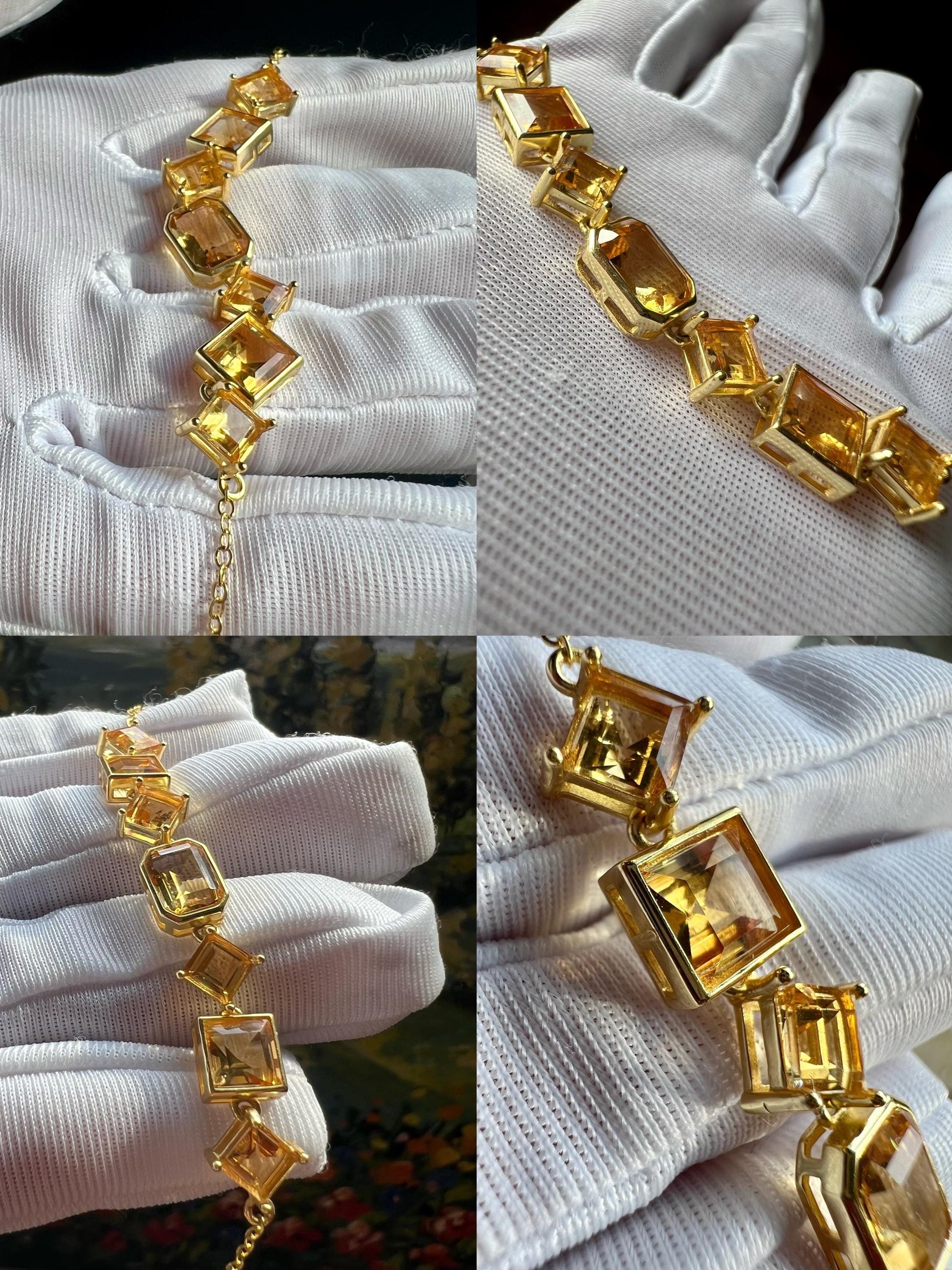 Certified natural Citrine bracelet/Faceted Citrine/S925 bracelet/天然巴西黄水晶 多颗刻面 纯银镶嵌 手链 #1946 净体黄水晶 明亮黄
