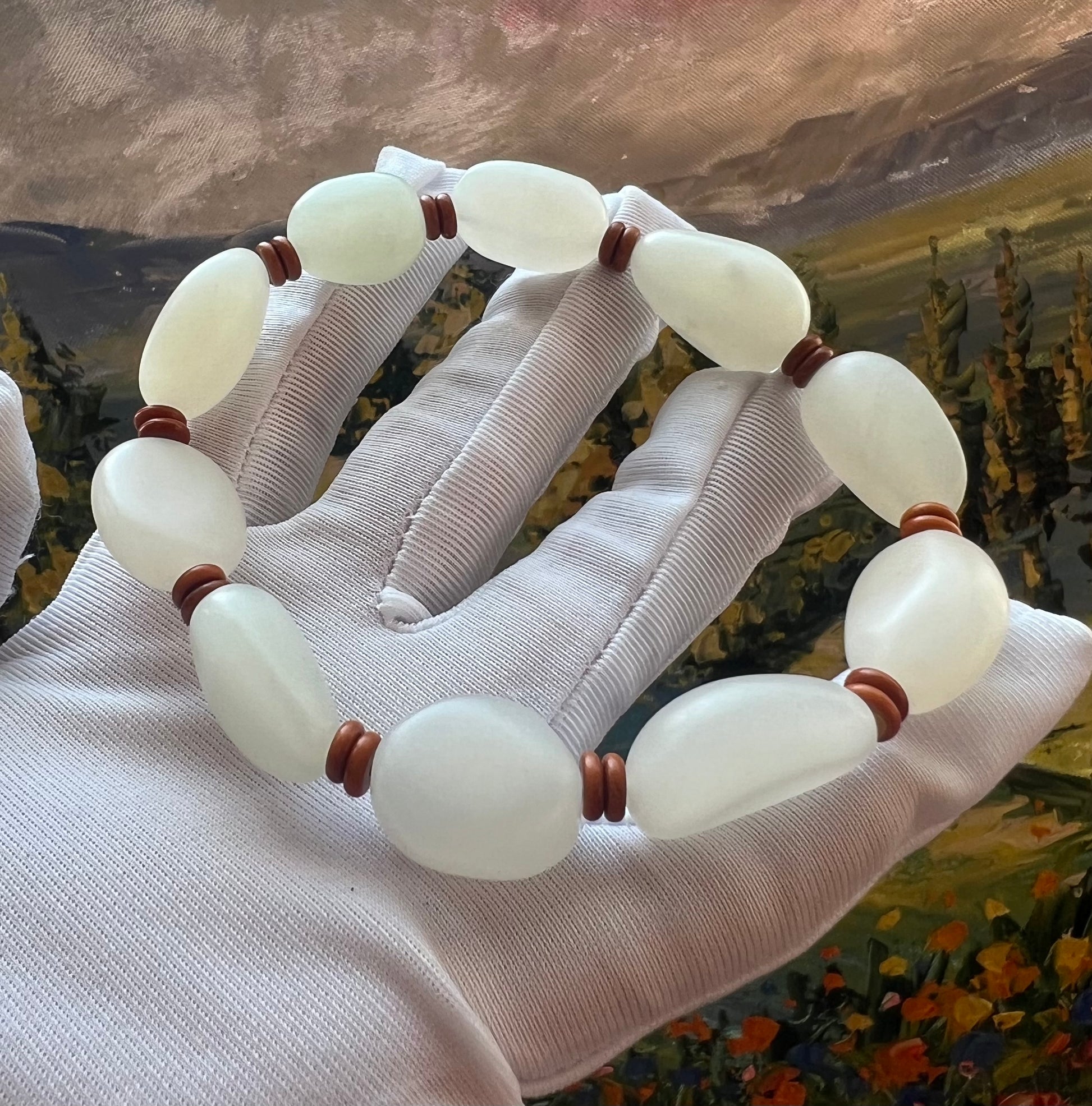 Natural white nephrite bracelet. Good density and high hardness, mature material, oily and glutinous. Good whiteness. soft matte finish, you can experience the fun of playing with it.