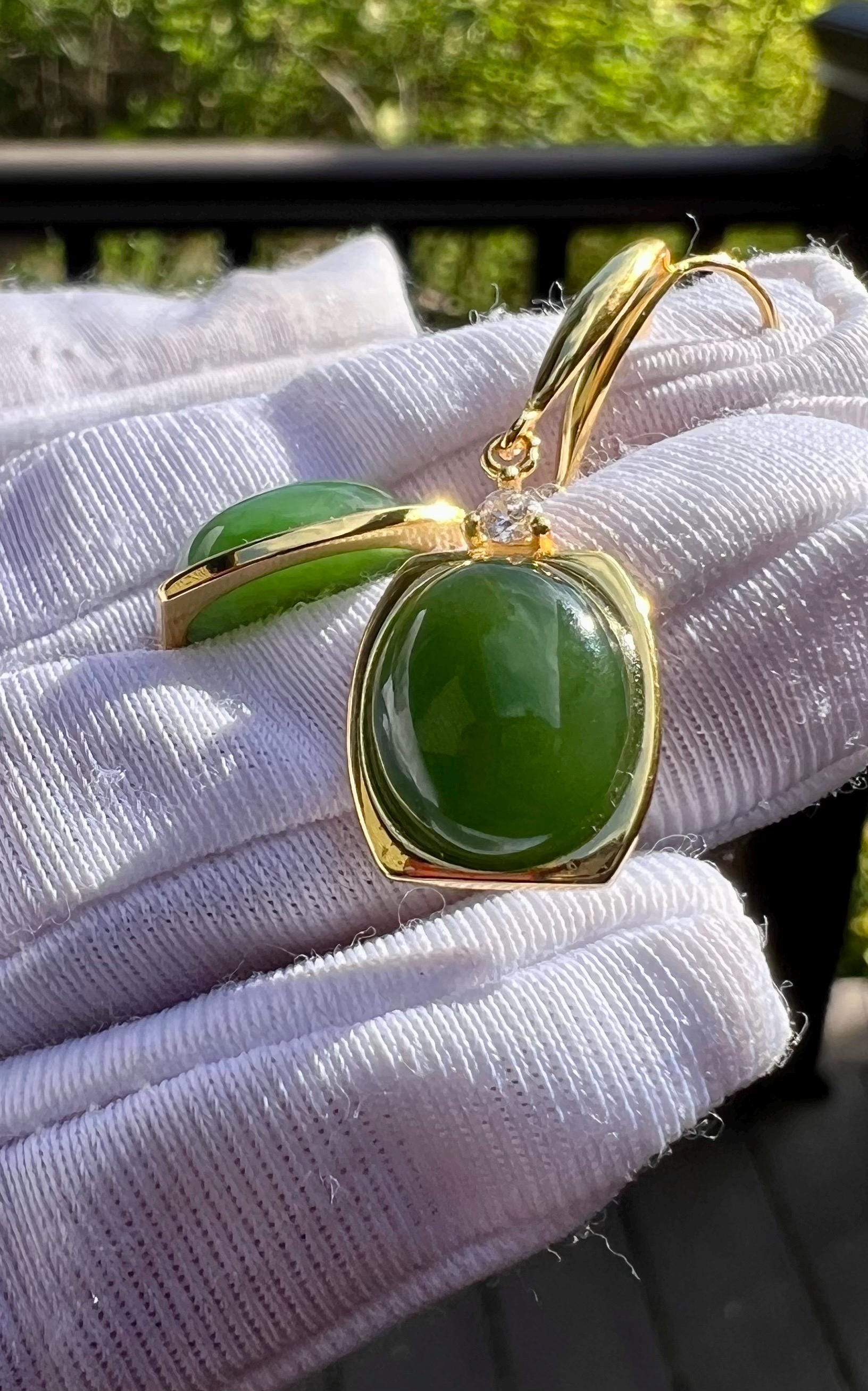 Certified natural nephrite green jade/green nephrite oval shaped earrings/S925 hook earrings 天然碧玉蛋面耳环 纯银耳钩#0064