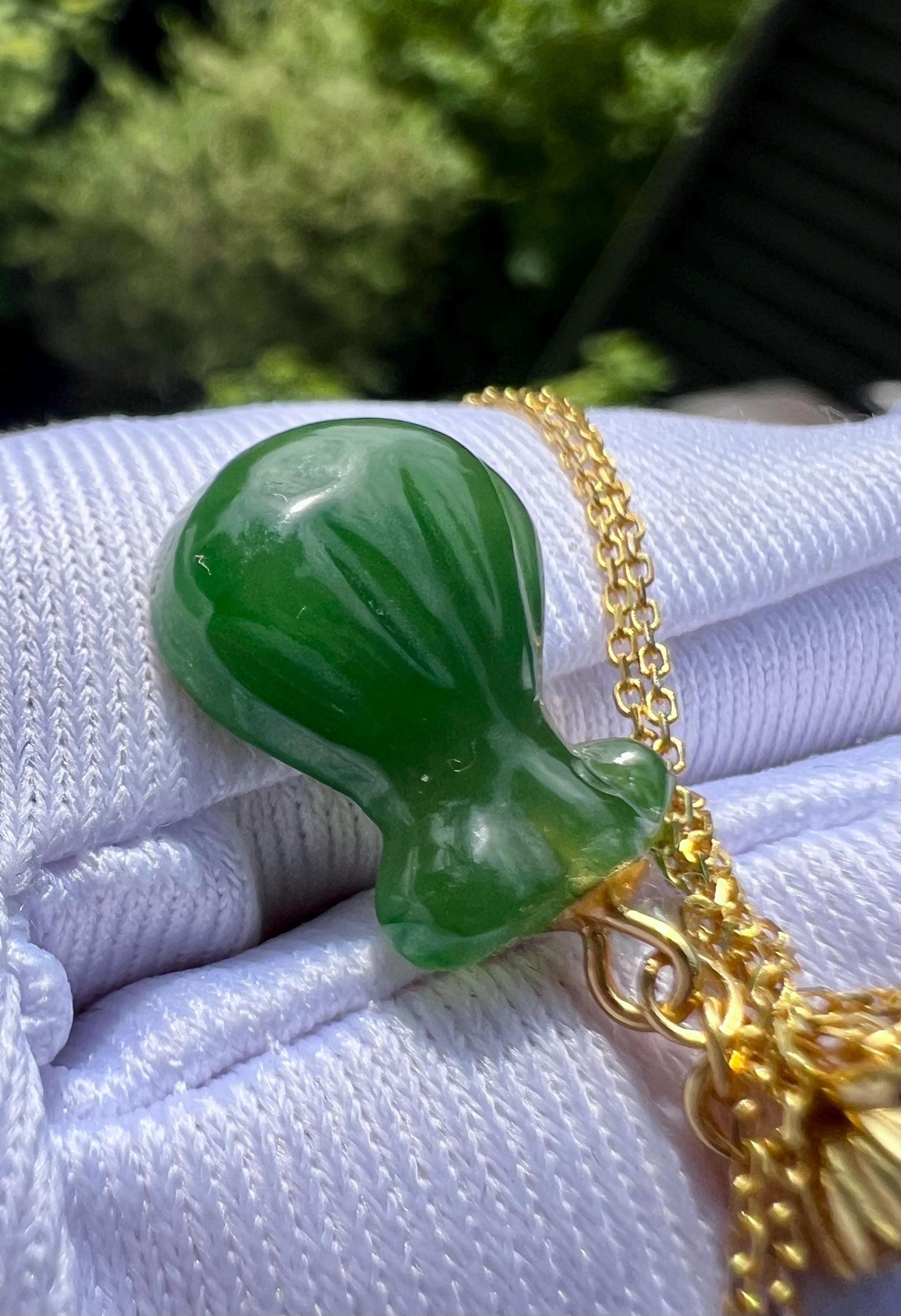 Certified natural nephrite green jade/rich green nephrite purse pendant necklace/lucky bag pendant天然软玉 碧玉阳绿 钱袋吊坠项链 纯银镶嵌福袋吊坠#4949