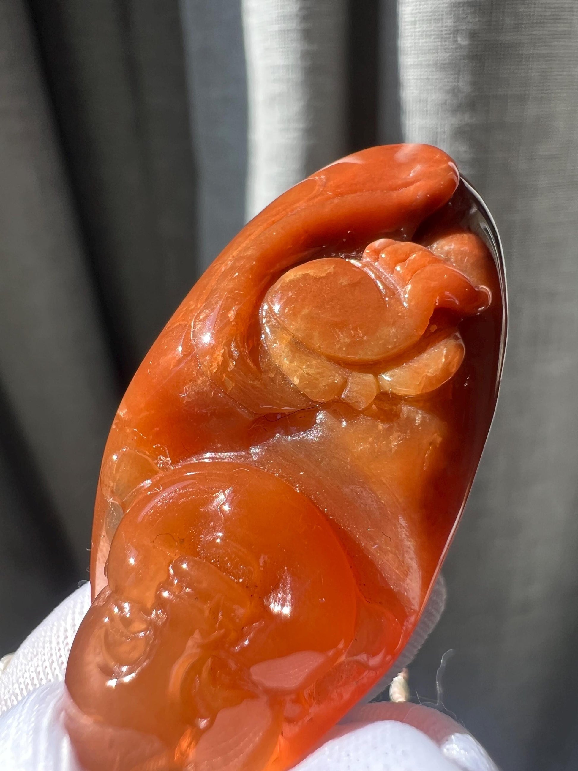 The exquisitely carved Laughing Buddha has full lines, and a bright smile. Legend has it that touching his big belly can ward off disasters and diseases, bless you with peace and make you smile all the time.