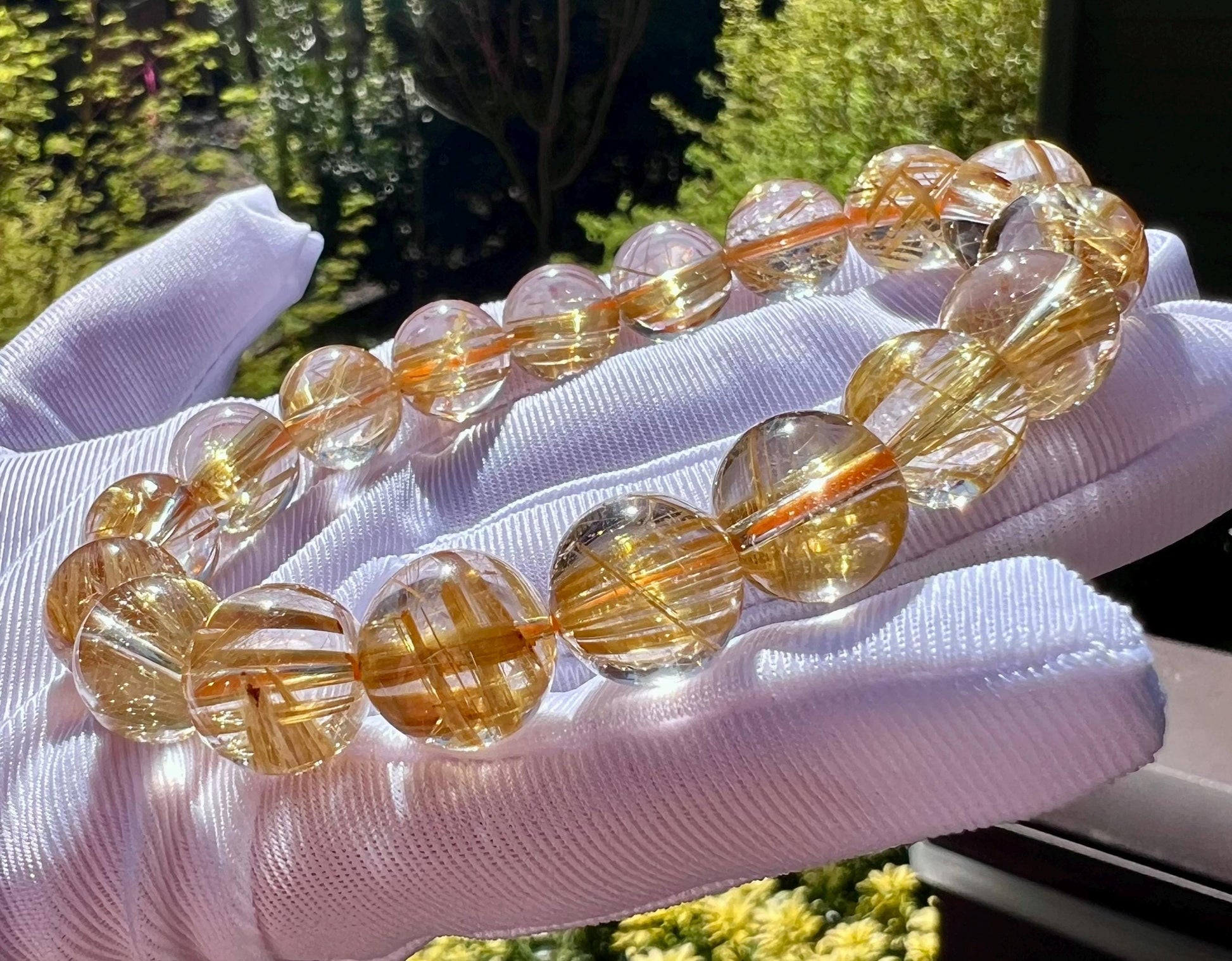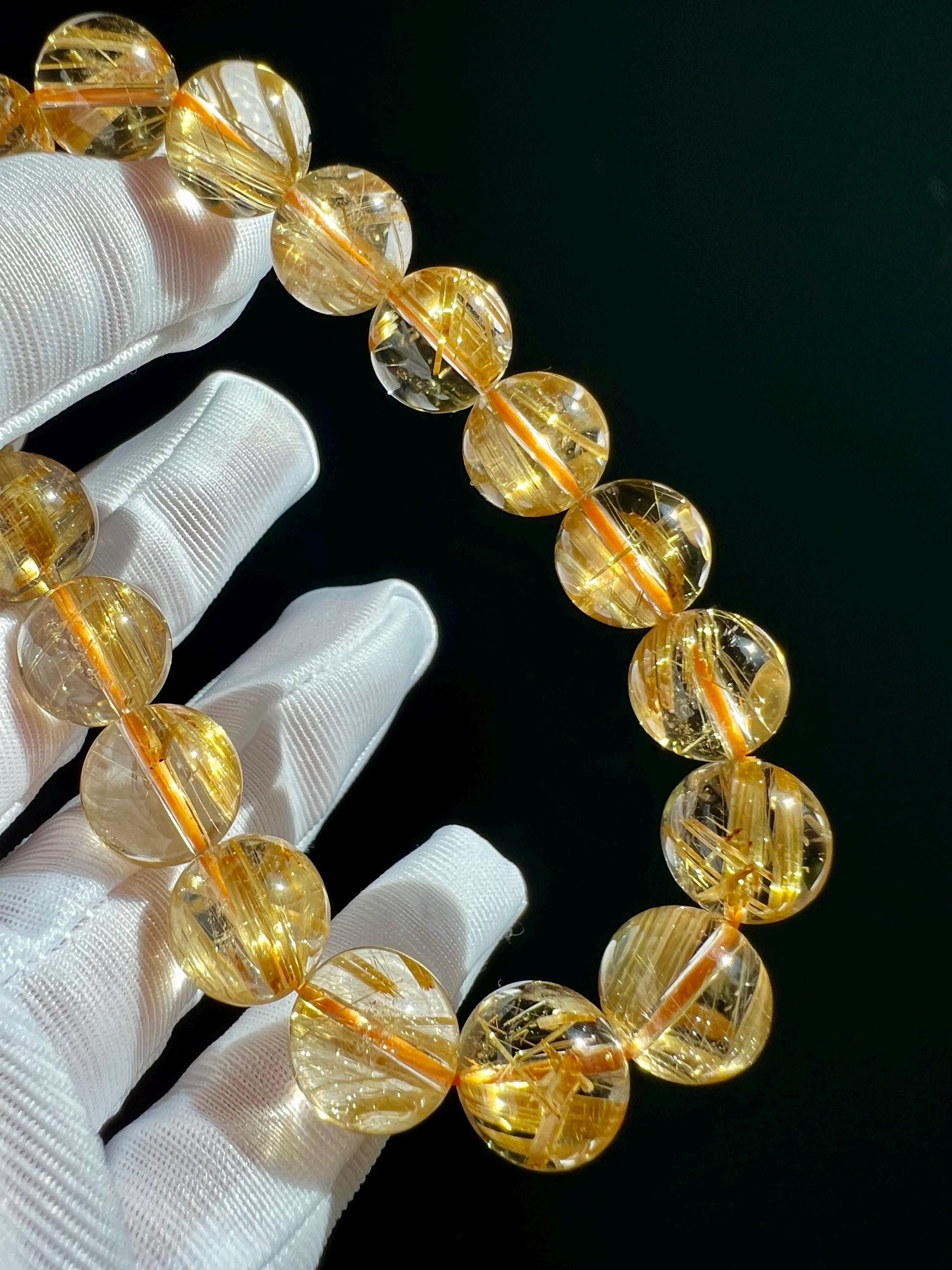 Golden Rutilated Quartz Bracelet: Natural Gemstone, 11mm Beads #8489