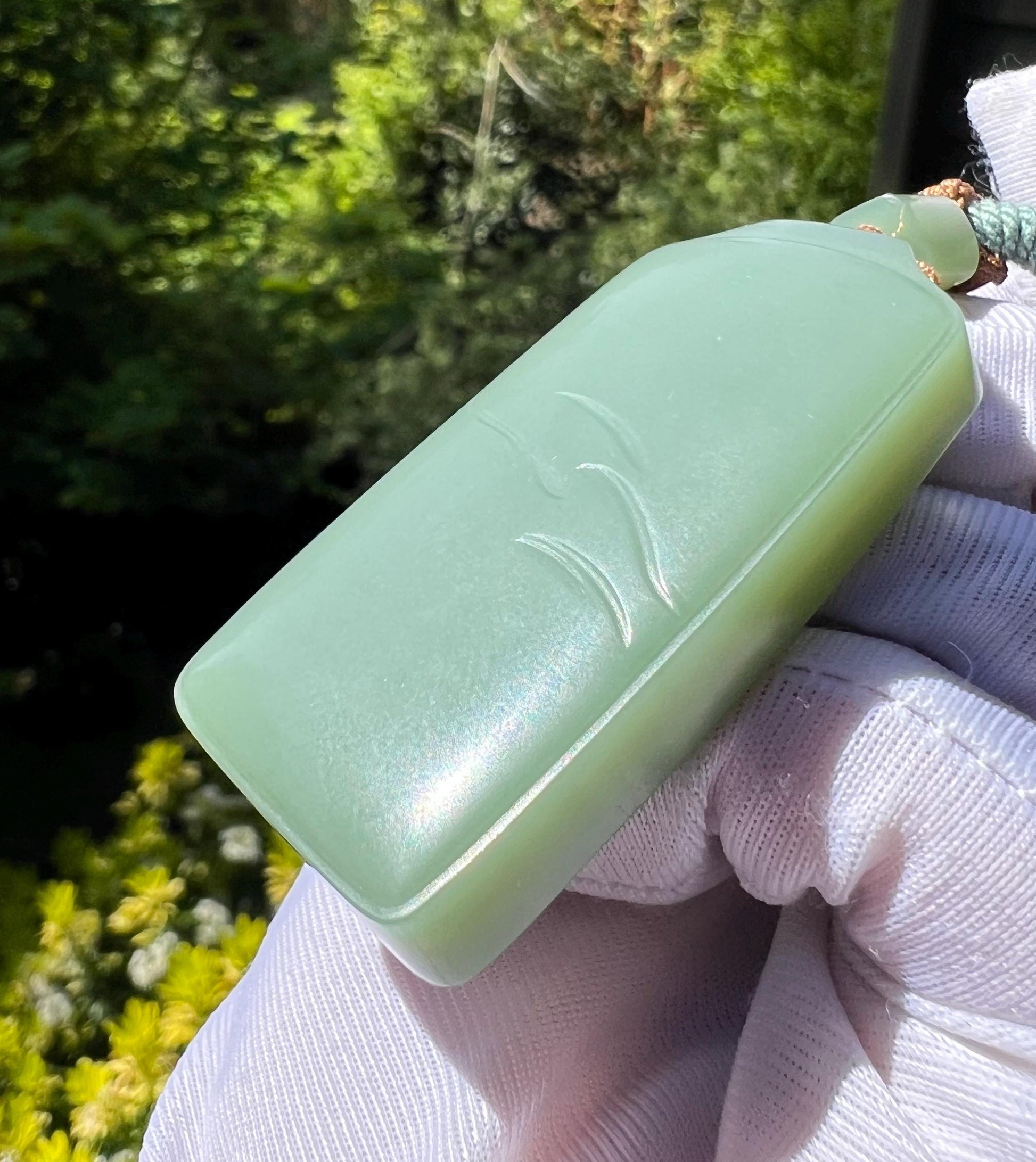 Natural green nephrite, bluish green nothing pendant. Old mine Interlayer material, first-grade fineness.