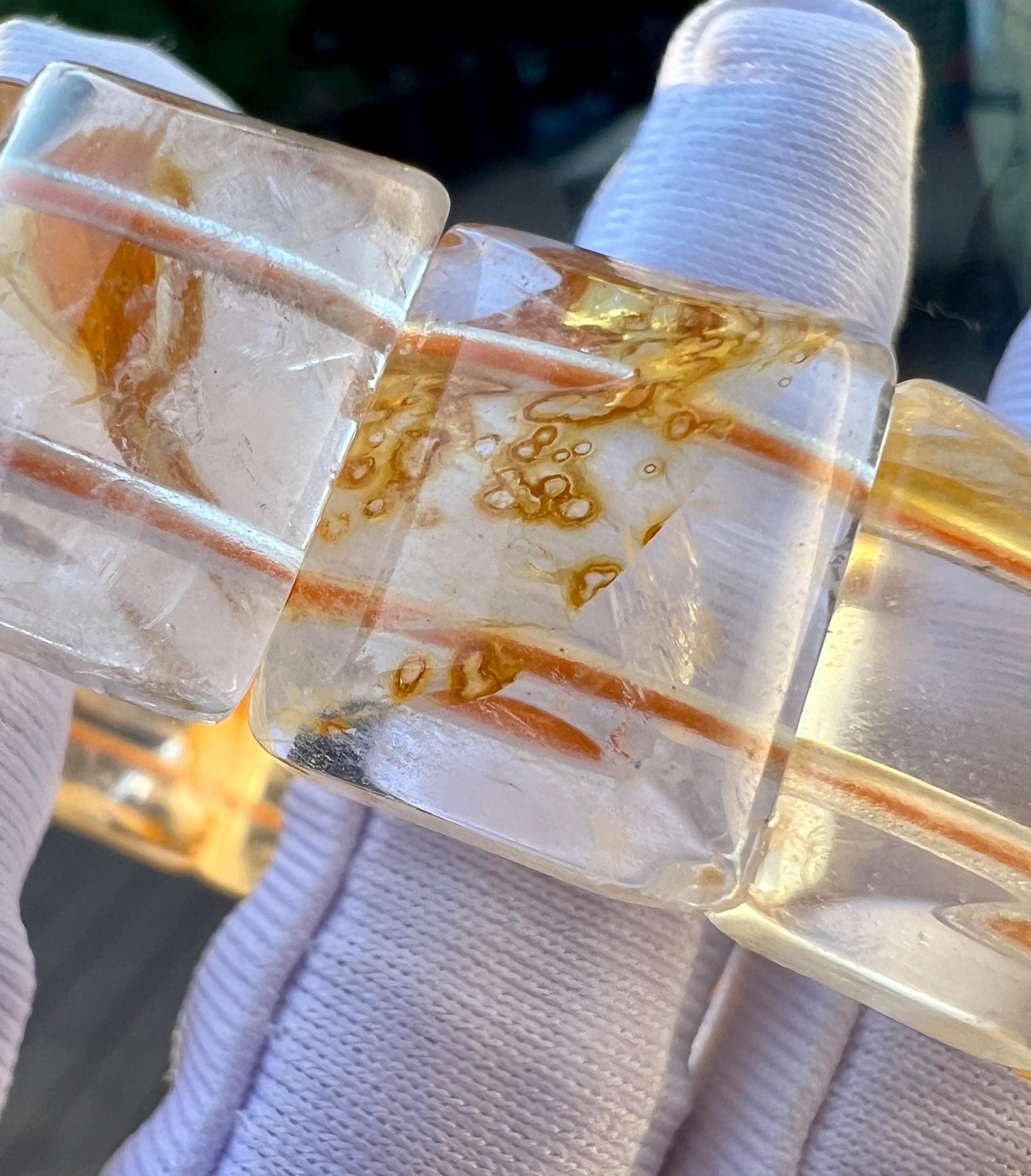 Natural yellow Hematoid quartz bracelet/ petal inclusion天然黄胶花水晶手牌 晶体干净 花瓣幻影